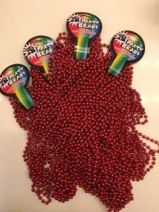 - 41 solid colored Mardi Gras Bead Necklaces. My recommendation is to use the student’s preferred (single) color, not a mix of colors. If you buy in bulk, 12 necklaces in a pack, it is less expensive. But remember, you’ll need 41 necklaces (so, 4 packs). https://amzn.to/2Yn6G12 *affiliate income