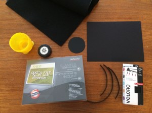 Finally, turn on the puck light and slide it under the slanted stand so that it is directly under the cut out hole and bowl. Then press and attach it firmly onto the black, Velcro compatible cloth.
