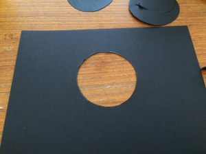 Use your bowl size as your pattern to draw a circle in the center of the black paper. Cut out the circle.
