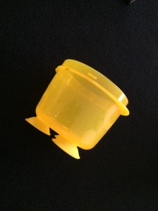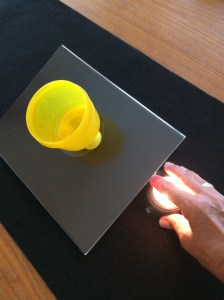 While in Virginia recently conducting a teacher training, I was discussing how use of a lighted bowl during meal times encourages children who visually function in Phase II to visually search for the bowl, then look for the food, reach and grasp. I showed this group my various strategies that I had come up with to date and one of the participants said, why don’t you use a Plexiglas top to stick the bowl to. Ah ha! Why not?
