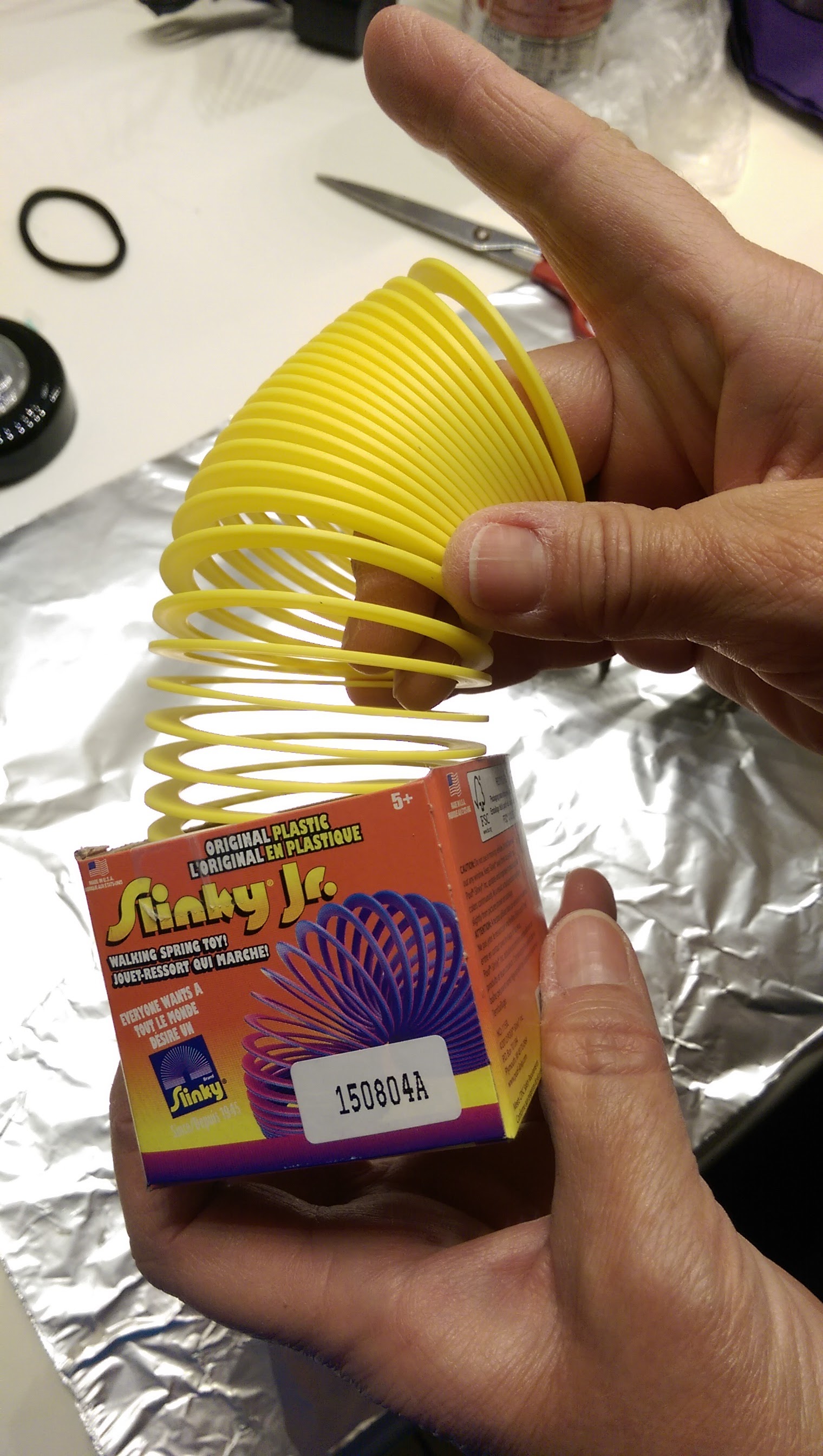 Use the child’s preferred color of Slinky. Note: As mentioned above, the best brand to use is Slinky Jr. made by Poof (as shown in picture). The best colors that I have found to use are either Yellow or Red.