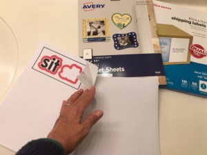 - Once the printer has printed your words on your Shipping Label paper, peel off the printed side and stick it on to your sheet of magnetic paper (sticky side of Shipping Label to white side of magnetic paper). Note; align the edges carefully and press out all bubbles.