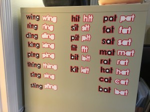 Above, three sets of “Bubbled” Word Families cut on the Cricut Cutting Machine.