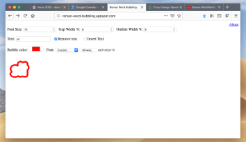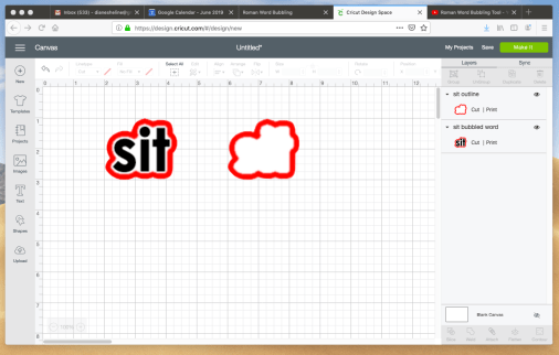 - You should now be back to your “Canvas” with your “Bubbled” word on it. Don’t worry about the size of your word. It will be adjusted when all the words are on the Canvas that you want to cut.