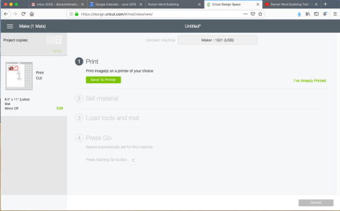 - On this screen, you have the choice to either “Send To Printer” or, “I Already Printed”. Since we want the print copy of our “Bubbled words to be cut, we will click on “Send To Printer”.