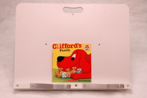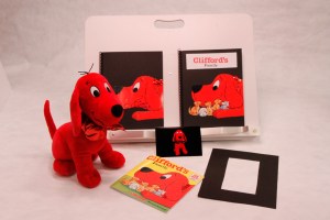 After this student could demonstrate an understanding that the 2D photo of Clifford represented his favorite toy, he was visually functioning in Phase III. At that point, we purchased 3 of the same book about Clifford (“Clifford’s Family”).