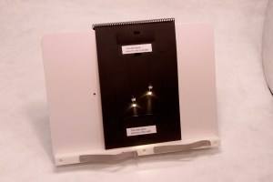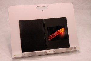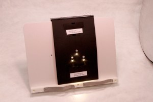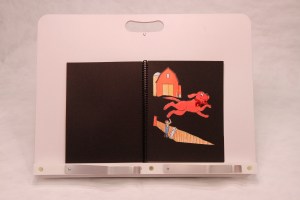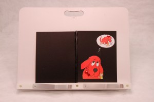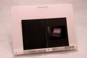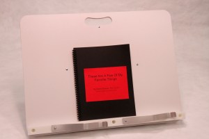 To make these books, place only one photo on the right-side page (no back to back images). Because transitioning from 3D to 2D is often a difficult process for students with CVI, I try to keep the array as simple as possible. While a white reading stand was used in the following images for photographic purposes (to show the size of the book and to make the book stand out), use of a black reading stand, and an Invisiboard behind the reading stand, is recommended.