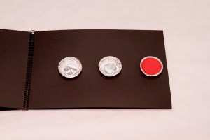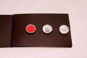 Note: Since this book has bulky 3D visual targets in it, it is easier to punch the holes in the blank pages and put on the binding (creating a blank book), before you glue on the visual targets.